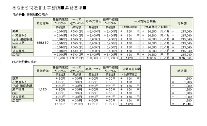 • あなまち司法書士事務所■昇給基準■